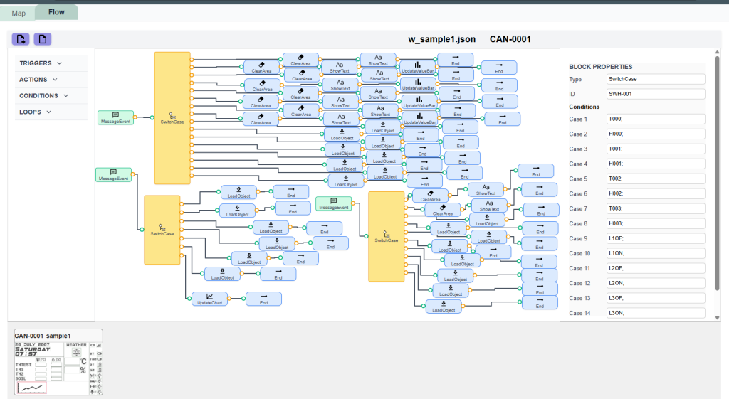 Define device behavior in the Flow Editor using intuitive blocks: Triggers, Actions, Conditions, and Loops.